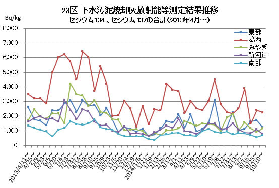 葛西水再生センター(江戸川区臨海町)、セシウム合計2,240Bq/kg (前回 2,390 Bq/kg)に~