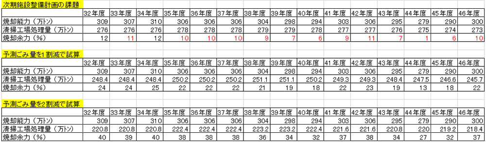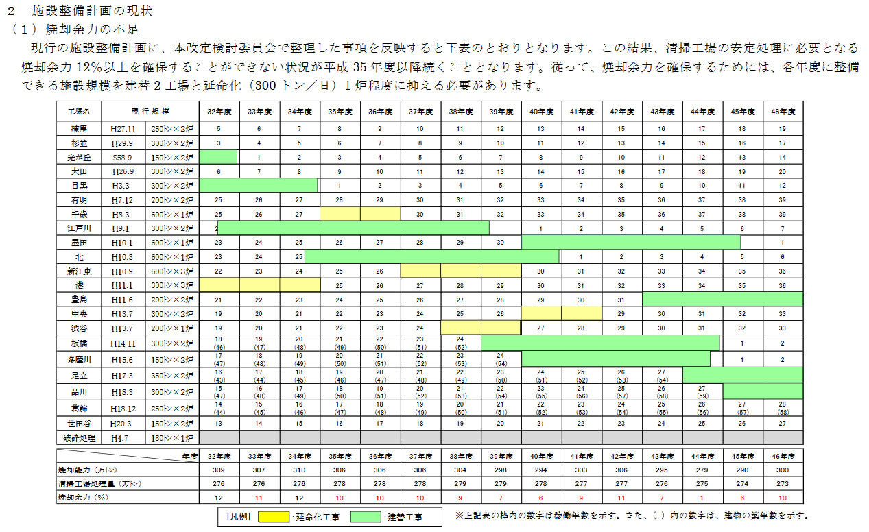 そして、このごみ量予測「清掃工場処理量」で現行一般廃棄物処理基本計画の施設整備計画をはめ込んだものが、